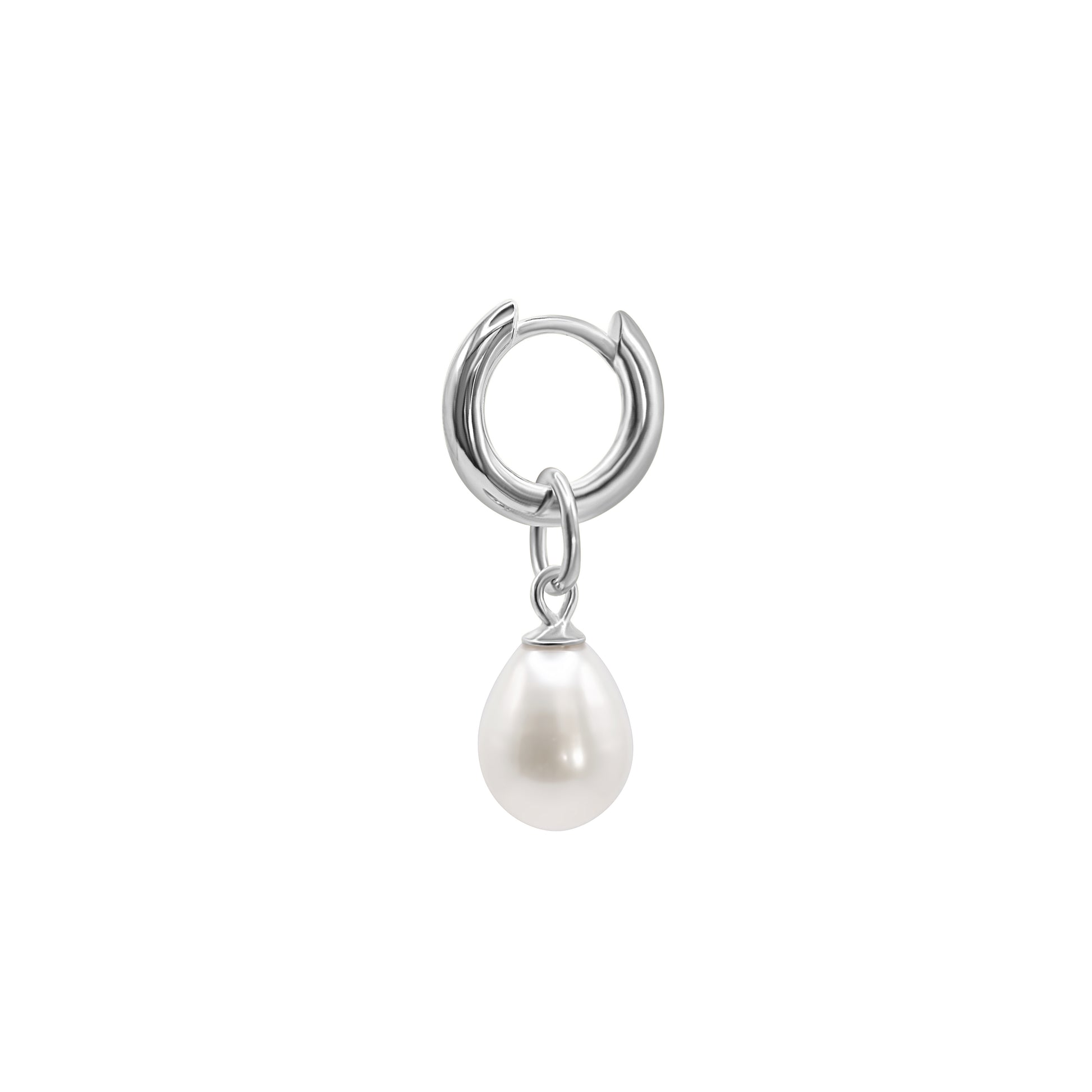 Single Silver Pearl Charm | Freshwater Pearl Layering Add-On in Rhodium-Plated Sterling Silver
