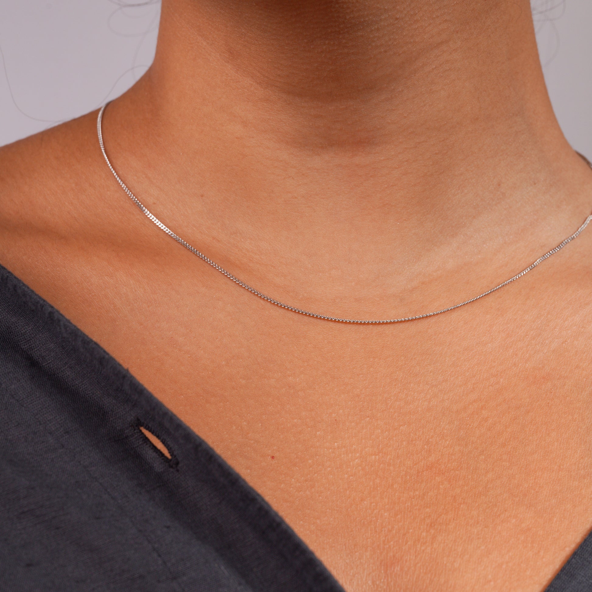 The Slim Silver Curb Chain brings quiet structure to your everyday. Its compact profile and tightly linked design offer a subtle edge - minimal, unassuming, and endlessly wearable.